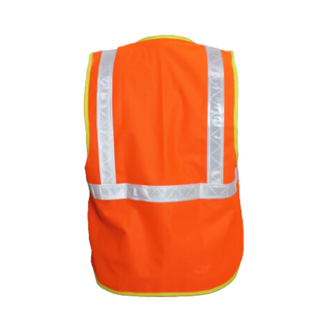 Cuenta con banda reflejante delantera en el pecho y hombros, así mismo en la espalda que permite que el usuario pueda ser visto fácilmente para evitar accidentes. Cuenta con tres bolsas delanteras y porta-gafette.