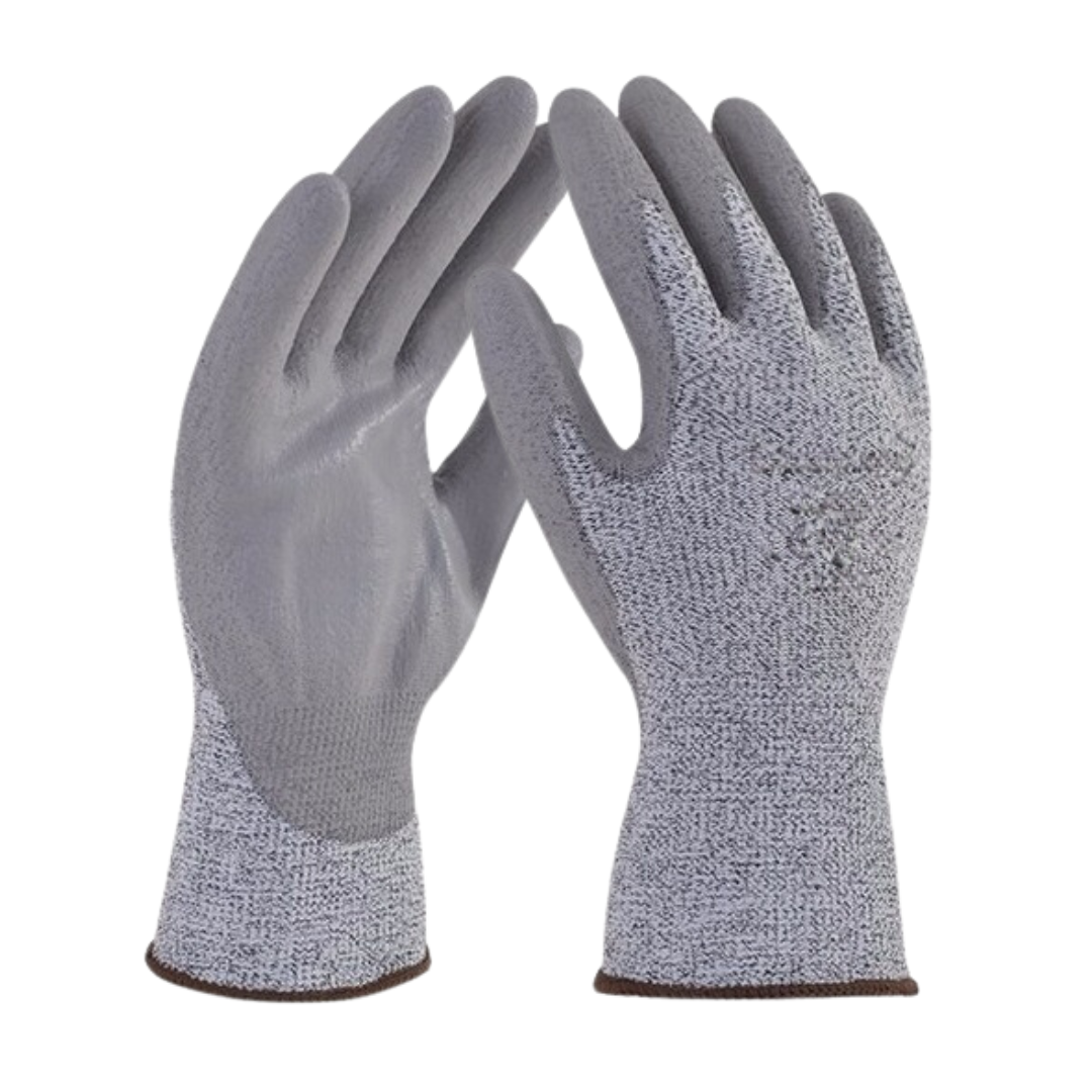 Resistente al corte Nivel 5, muy flexible y fresco. Hecho a base de poliuretano y fibra de vidrio que da como resultado un novedoso guante con resistencia al corte.